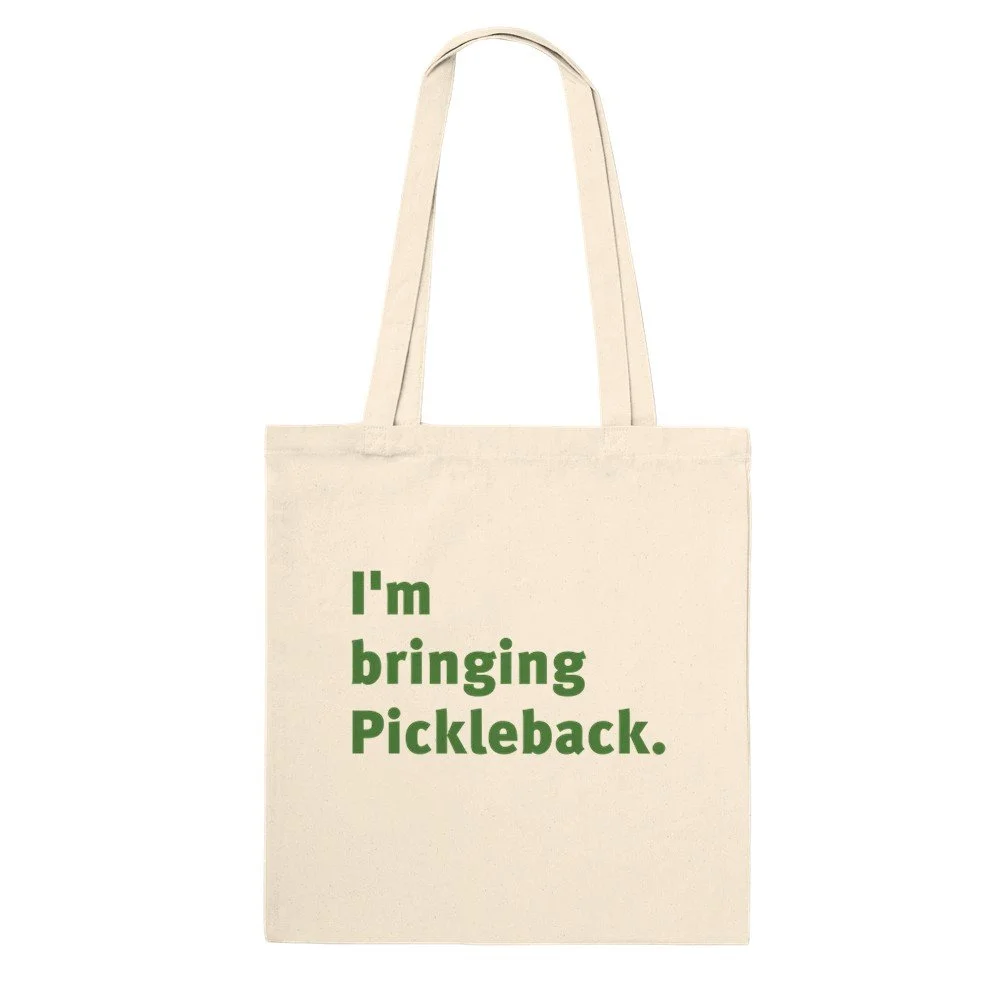 Look, I mean, finally: a tote bag that simultaneously communicates your love of briny beverages and classic JT/Timbaland collabs. These tote bags feature reinforced stitching on handles for more stability. What's their capacity? Why, 10 liters as it happens. What does that mean exactly? In our experience it can hold up to six 4-packs of Pickleback. Enough to make you and twenty-three of our closest friends happy, or you and three of your true day-ones ecstatic.